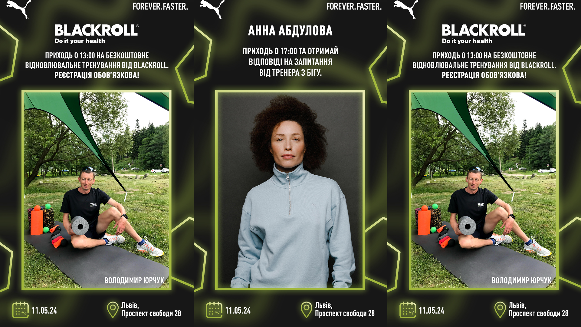 Розклад додаємо, локацію PUMA можна знайти в стартовому містечку ПІВМАРАФОН «НЕ ЗУПИНЯЙСЯ, ЛЬВІВ!» на площі перед Оперою (Свободи, 28) ви точно не пропустите.