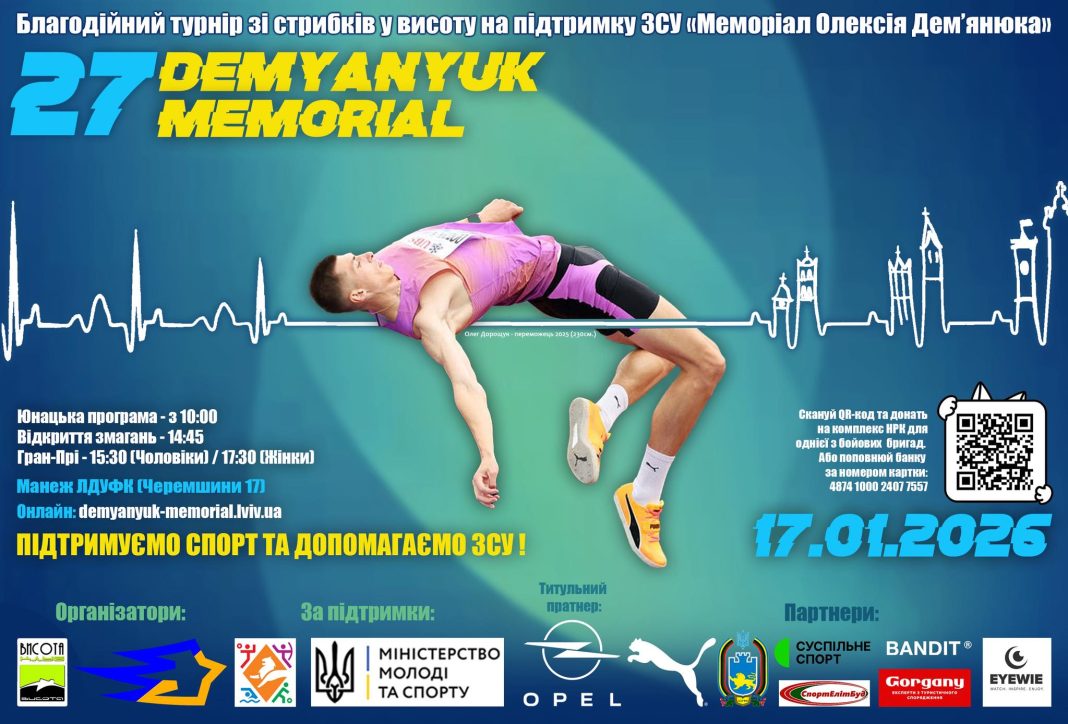 Вже цієї суботи, 17 січня, у Львові відбудеться традиційний турнір зі стрибків у висоту — Меморіал МСМК Олексія Володимировича Дем’янюка. Цьогоріч змагання, які організовує львівський клуб «Висота», пройдуть у 27-й раз.